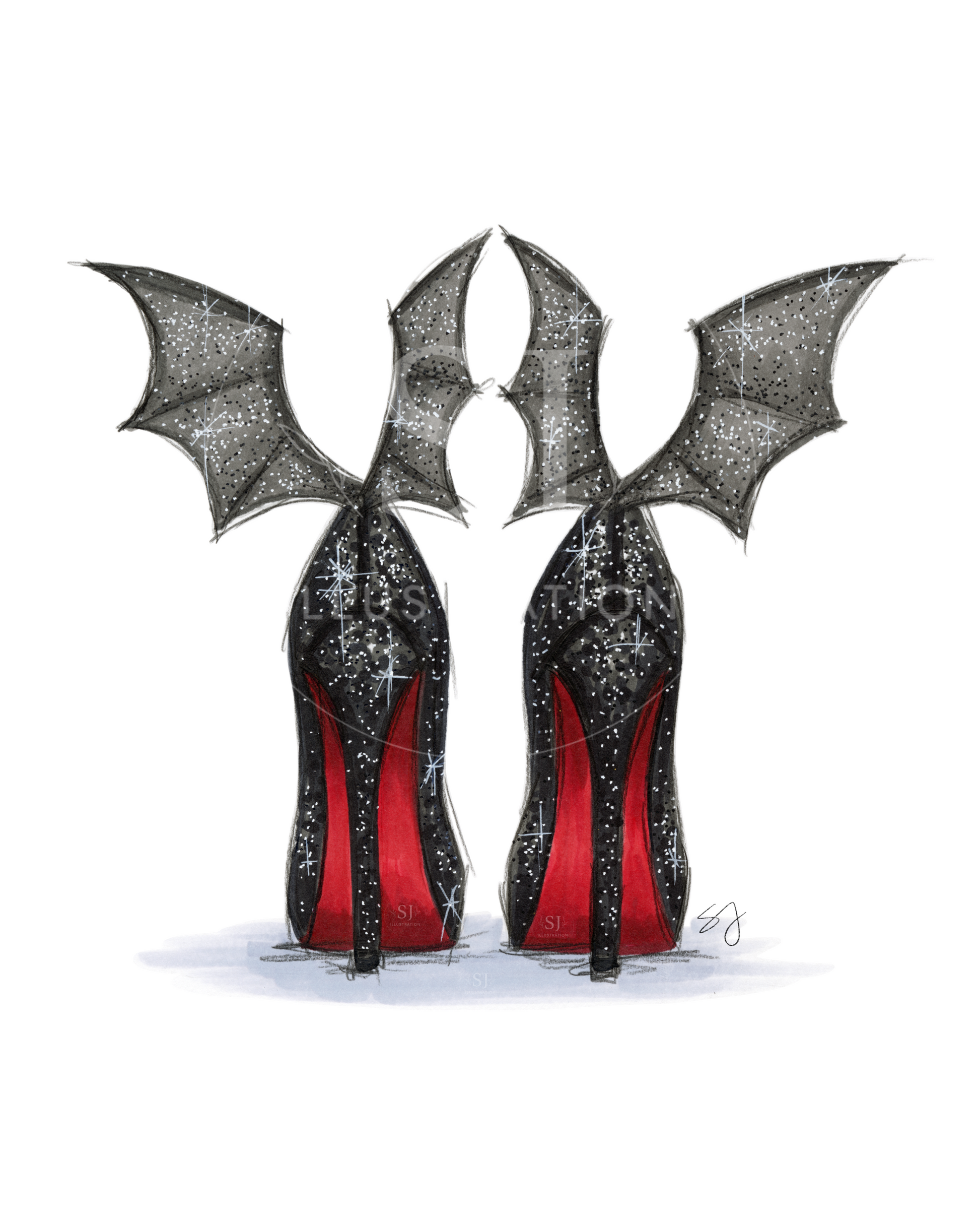 Batty Heels | Fun Halloween Fashion Illustration (EMBELLISHED PRINT)