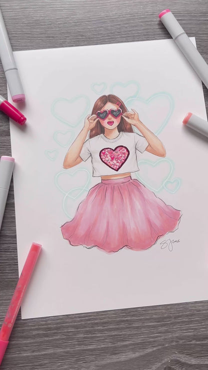 Hearts Galore | Casual Fashion Illustration (ART PRINT)